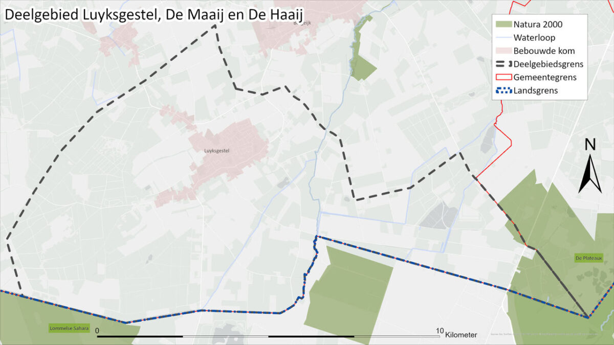 Deelgebied Luyksgestel, De Maaij en De Haaij vormt het zuidelijke deel van gemeente Bergeijk binnen de begrenzing van Grenscorridor. We starten in eerste instantie met een kleiner gebied, waarin we samen de eerste stappen zetten richting natuurontwikkeling, landbouwtransitie en leefbaarheidsverbetering. In de loop van 2026 breiden we het werkgebied uit, zodat we ook in de omliggende gebieden aan de slag kunnen met de uitdagingen en kansen die daar liggen. Daarbij houden we rekening met de unieke landschappelijke en ecologische waarden van het gebied.